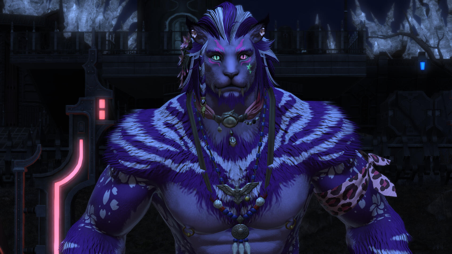 Faolan is a big and buff Hrothgar. He is a paladin, a conjurer, a smith, a cook, and the captain of a squadron of adventurers working with the Twin Adders. He considers his squadron to be his family, and he is very protective of them. He's a shameless flirt. He is in an open relationship with Ziethgar.